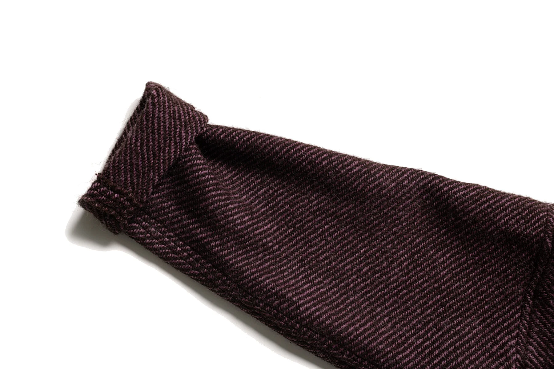 The fabric is made of Cochineal-dyed Coopworth and natural brown Navajo-raised Churro-blend wools.